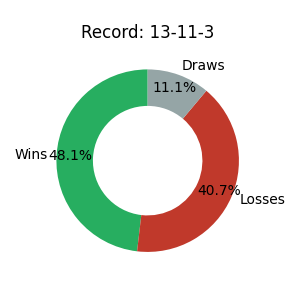 | 27 | 13 | 11 | 3 | 48.1% | 81.85 |