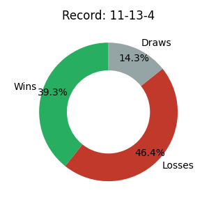 | 28 | 11 | 13 | 4 | 39.3% | 88.07 |