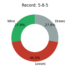 | 18 | 5 | 8 | 5 | 27.8% | 84.22 |