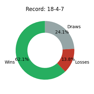 | 29 | 18 | 4 | 7 | 62.1% | 86.97 |