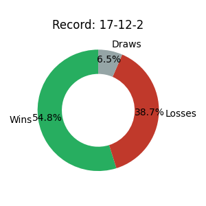 | 31 | 17 | 12 | 2 | 54.8% | 87.39 |