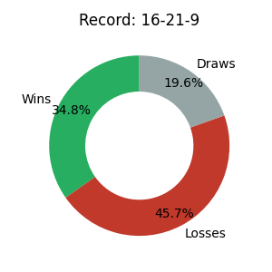 | Matches | Siege | Niederlagen | Draws | Win % | Ø Rating |