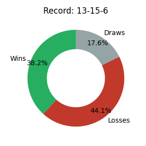 | 34 | 13 | 15 | 6 | 38.2% | 86.41 |