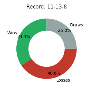 | 32 | 11 | 13 | 8 | 34.4% | 85.19 |