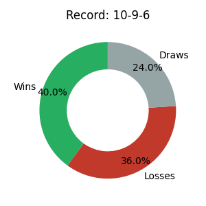 | Matches | Siege | Niederlagen | Draws | Win % | Ø Rating |