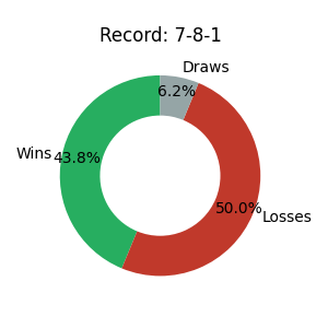| 16 | 7 | 8 | 1 | 43.8% | 86.19 |