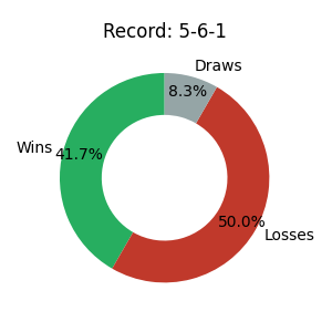 | 12 | 5 | 6 | 1 | 41.7% | 87.75 |