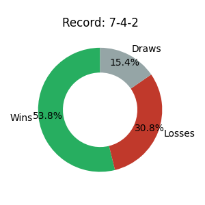 | 13 | 7 | 4 | 2 | 53.8% | 89.31 |