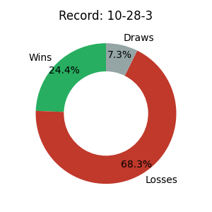 | 41 | 10 | 28 | 3 | 24.4% | 84.90 |