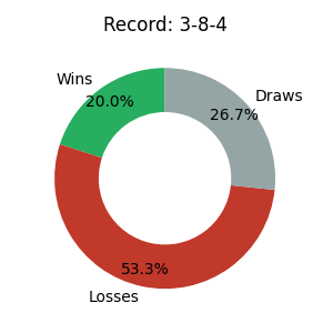 | Matches | Siege | Niederlagen | Draws | Win % | Ø Rating |